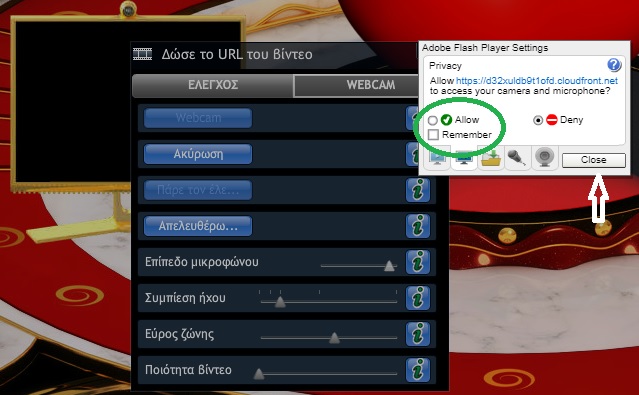 6.Βήμα: Σε αυτό το στάδιο αν χρησιμοποιείτε για πρώτη φορά την web tv , θα σας εμφανίσει ένα παράθυρο από τις ρυθμίσεις του Flash Player