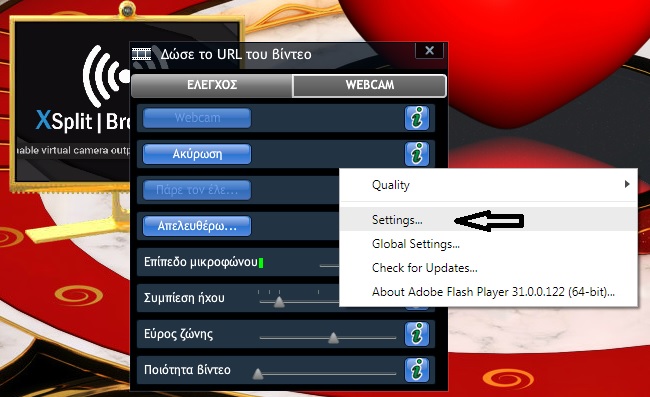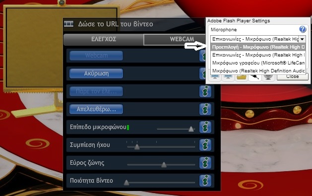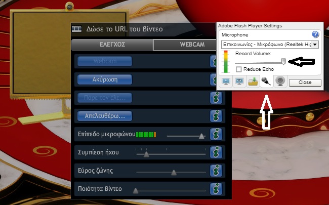 Στις ρυθμίσεις μικροφώνου του flash player έχετε τη δυνατότητα να ελέγξετε την ένταση που μικροφώνου